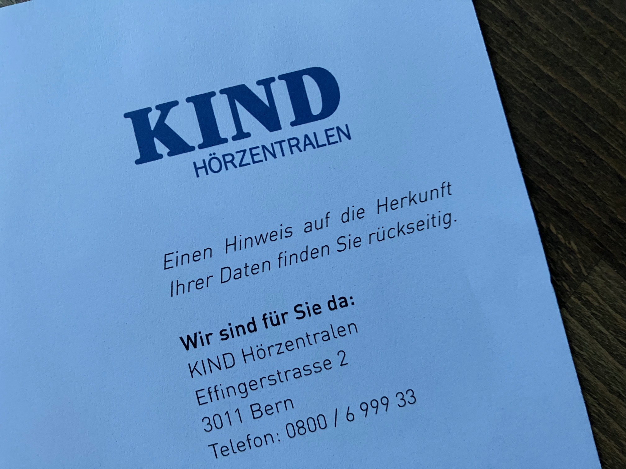 Letzthin kam die Einladung zu einem kostenlosen Hörtest bei der Firma Kind. Schon wollte ich mich ärgern. Dann las ich auf dem Brief oben rechts: «Einen Hinweis auf die Herkunft Ihrer Daten finden Sie rückseitig». Und dann nochmals deutlich unten auf der Seite – die Hörtest-Firma konnte ja nicht wissen, dass ich schon einen kostenlosen Sehtest gemacht habe – nochmals der Hinweis: «Bei Fragen zur Herkunft ihrer Daten beachten Sie bitte die Rückseite!»