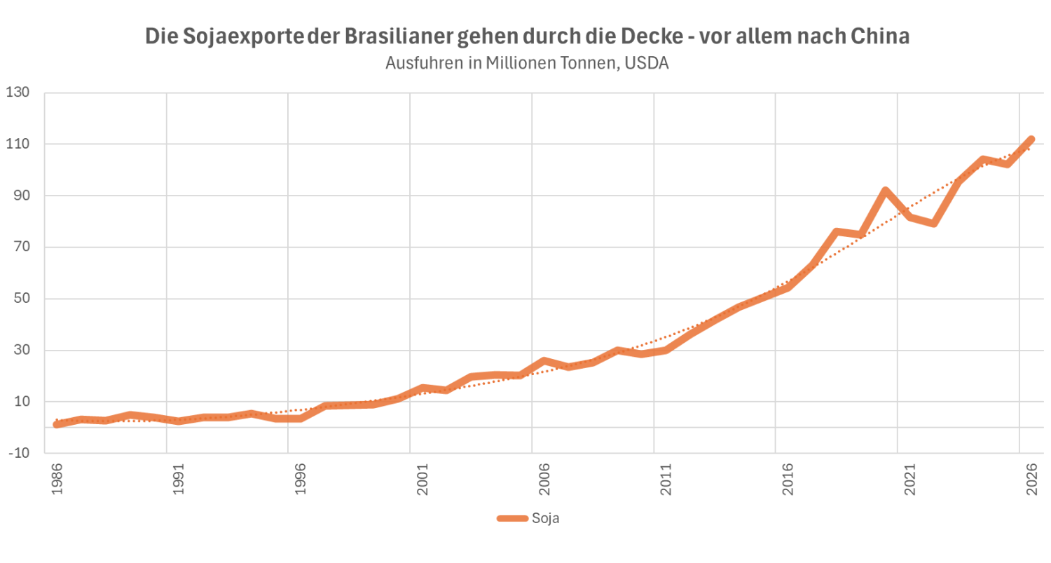 Die Sojaexporte der Brasilianer gehen durch die Decke. Hier gibt es eine grössere Auflösung der Grafik.
