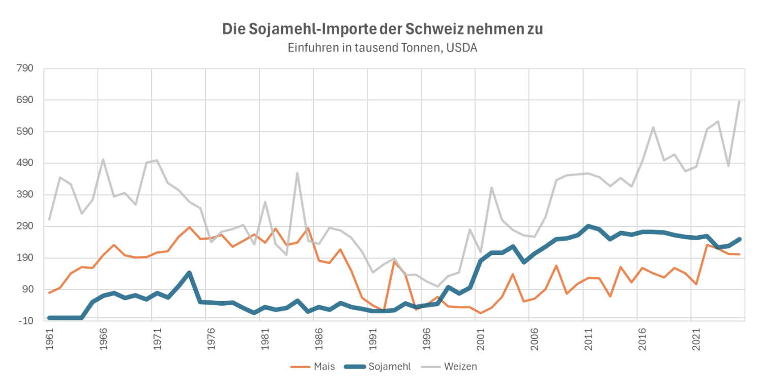 Die Schweiz importiert immer mehr Agrarrohstoffe. Hier gibt es eine grössere Auflösung der Grafik.